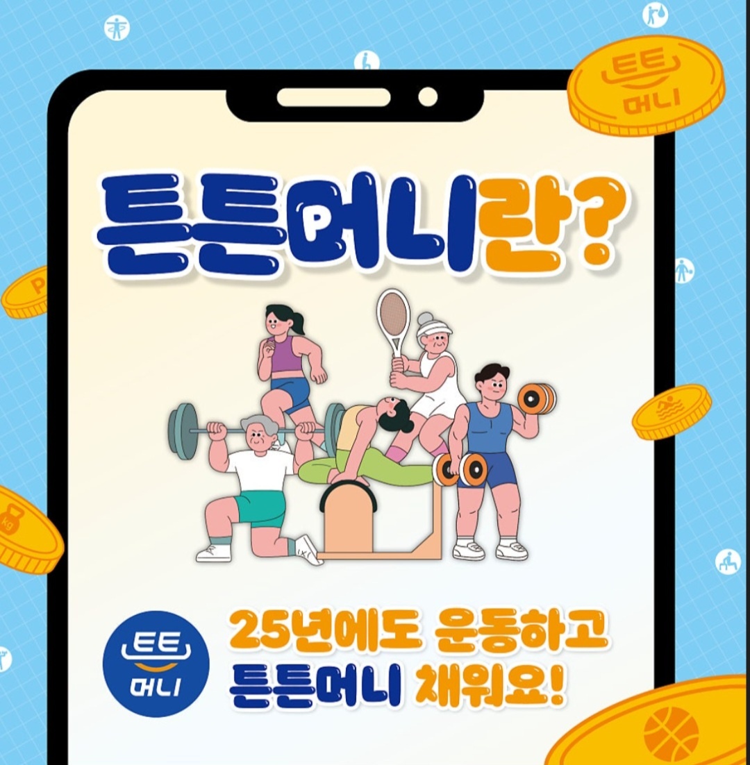 튼튼머니는 단순한 포인트 적립이 아니라, 건강을 챙기면서 운동을 더욱 즐겁게 할 수 있도록 돕는 프로그램입니다. 체력 진단도 받고, 운동하면서 포인트까지 쌓을 수 있으니 일석이조죠! 올 한 해 꾸준히 운동해서 튼튼머니를 꽉 채우고, 건강한 하루하루를 만들어보세요!~~~
